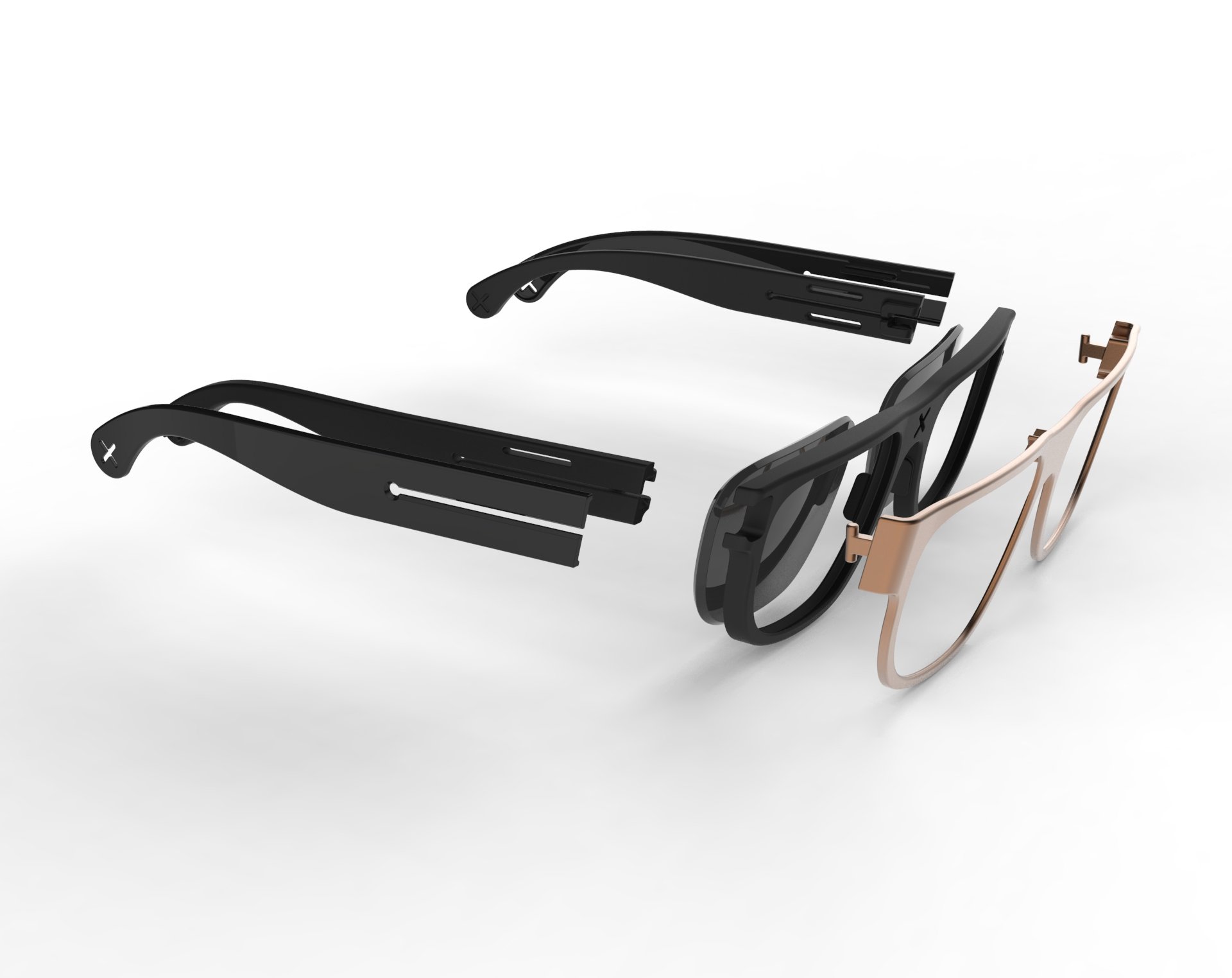 The outcome is a versatile pair of sunglasses, that fit (almost) every face type, and make you look really cool, no kidding. Frame is designed for a wide range of lens types, including prescription lenses. Since the design of the frames won’t change, lenses can be used for a long time. In the rare occasion that ant frame part would break, cost effective spare parts can be supplied easily. Designed, manufactured and assembled in the US. Pre-production orders can be placed soon, stay tuned.